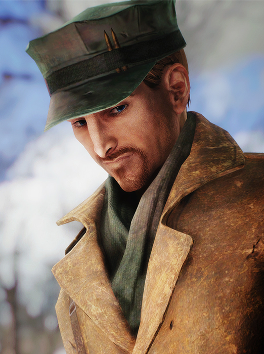Canon Compliant: Timeline range from the beginning of Fallout 4 to the aftermath of Riley's Minuteman or Railroad ending. He can be easily pushed in either direction -- Honestly, Riley is the best candidate for any faction ending, but Brotherhood and Institute are distinctly not his "good" ends. (I'm happy to play them out, though!) He is the "help anyone who asks" type of Sole Survivor, too kind for his own good, unwilling -- if not outright unable -- to turn his back to suffering. In many ways, he's spurred on by his guilt for not doing more to help people Pre-War, like he's trying to compensate for his inaction.
